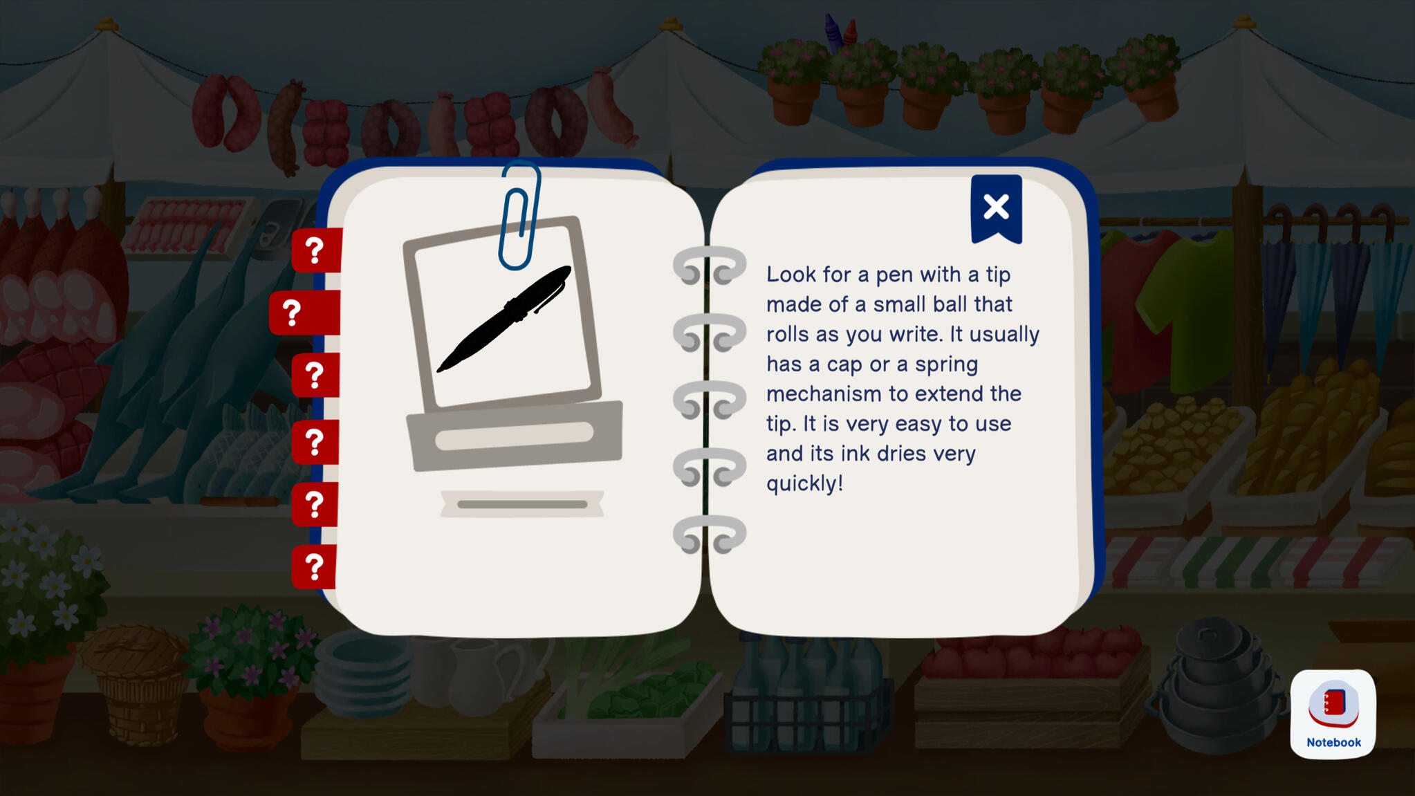 - A drawing game where you have to draw a pen;