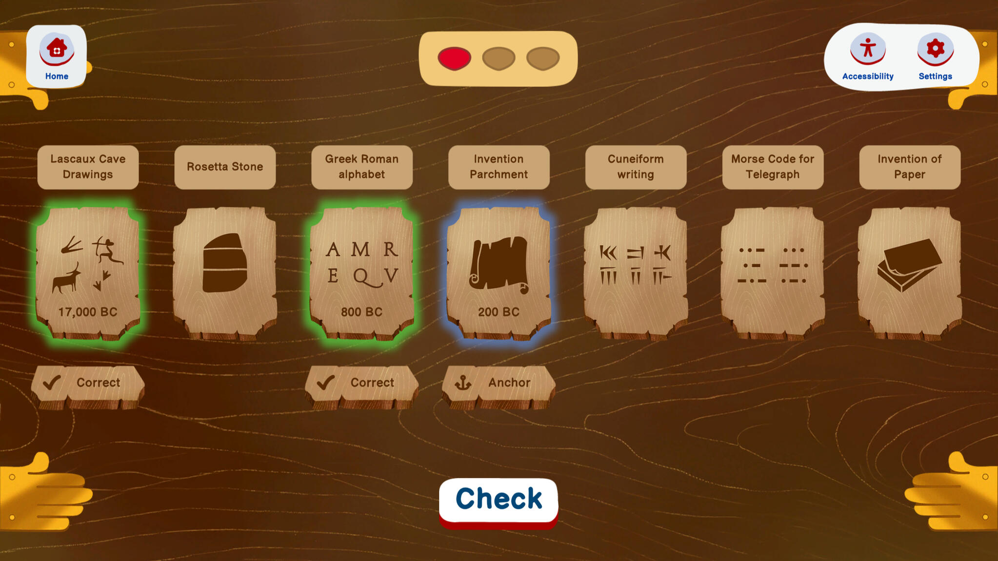 - A puzzle game where you have to order historical event;